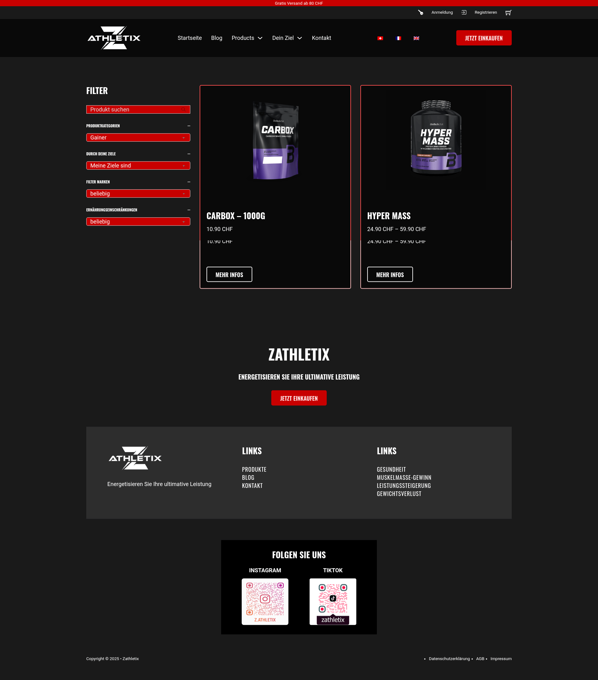 Zathletix.ch is a multilingual webshop for dietary supplements and sports equipment. Lots of features, lots of payment options. I faced many challenges with the development of the site, but in the end everything came together.