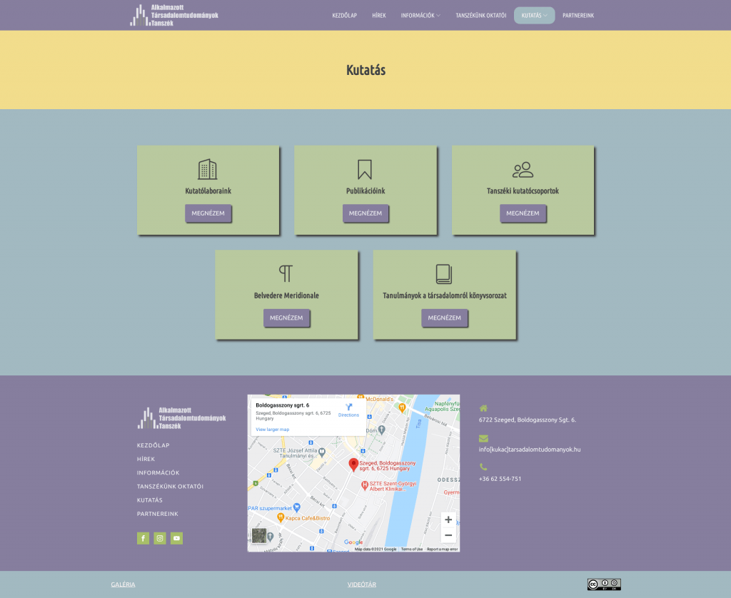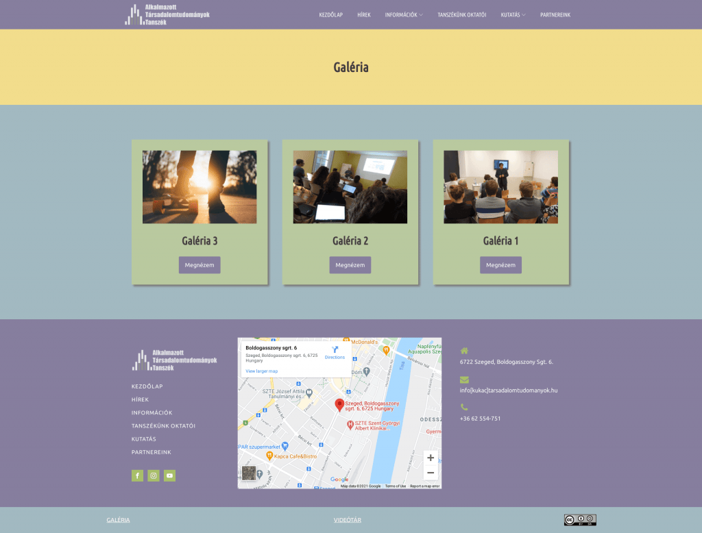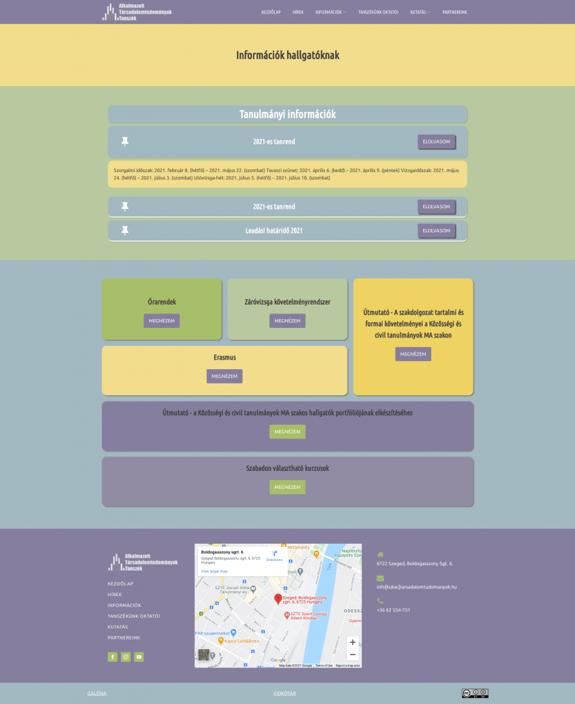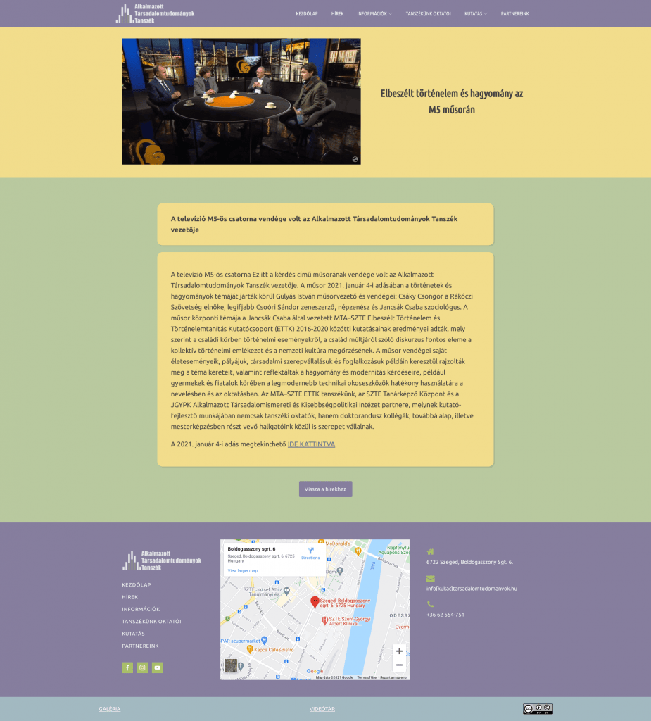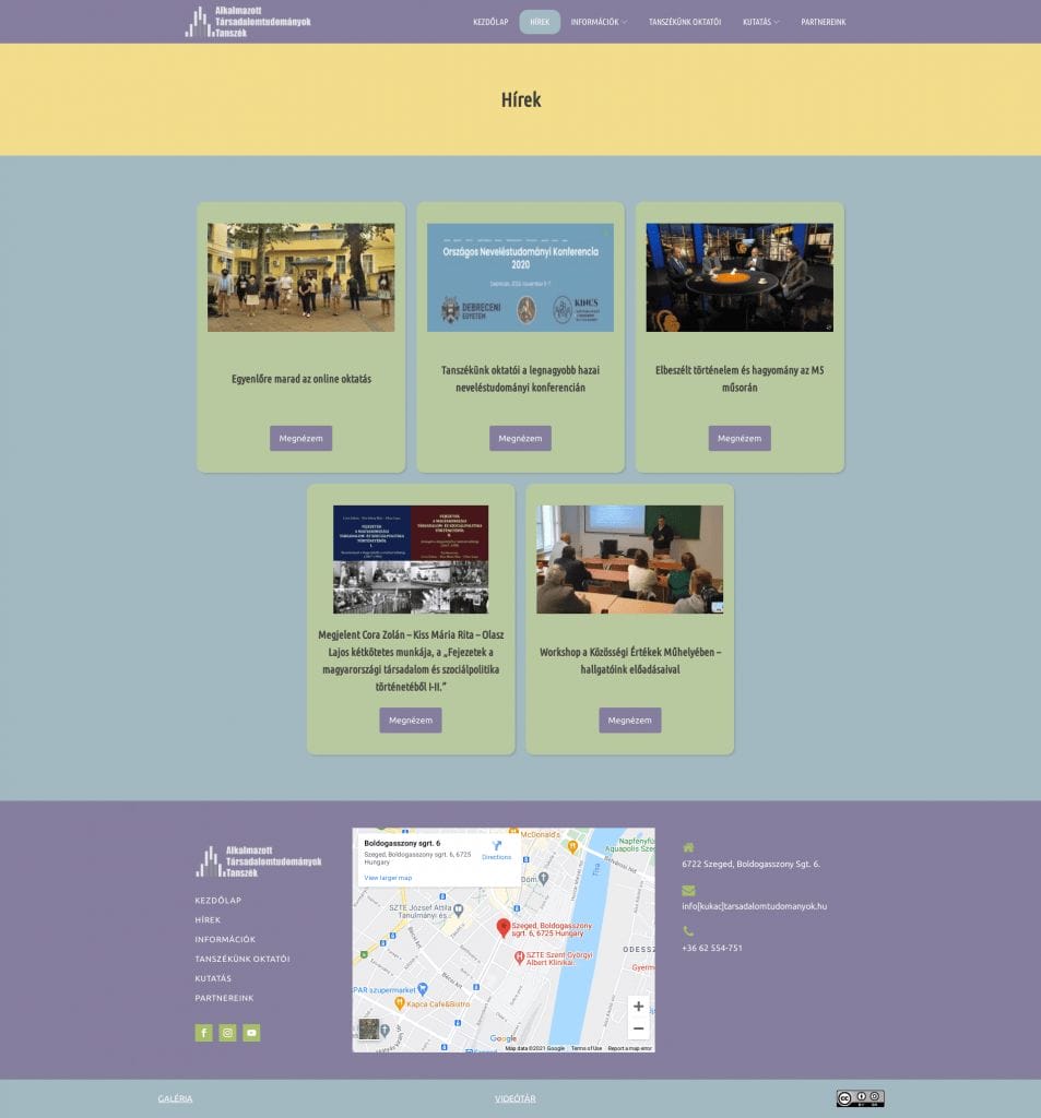 I have developed the website of the Department of Applied Social Sciences for this project. Countless interesting solutions had to be forged during the development because this website is rich in content types. However, it also needs to display a lot of useful information. Therefore, unique entry types and multiple custom fields help make managing the website easy for those who upload content. In addition to a video and image gallery, the site also has several posts, news, and research sections.